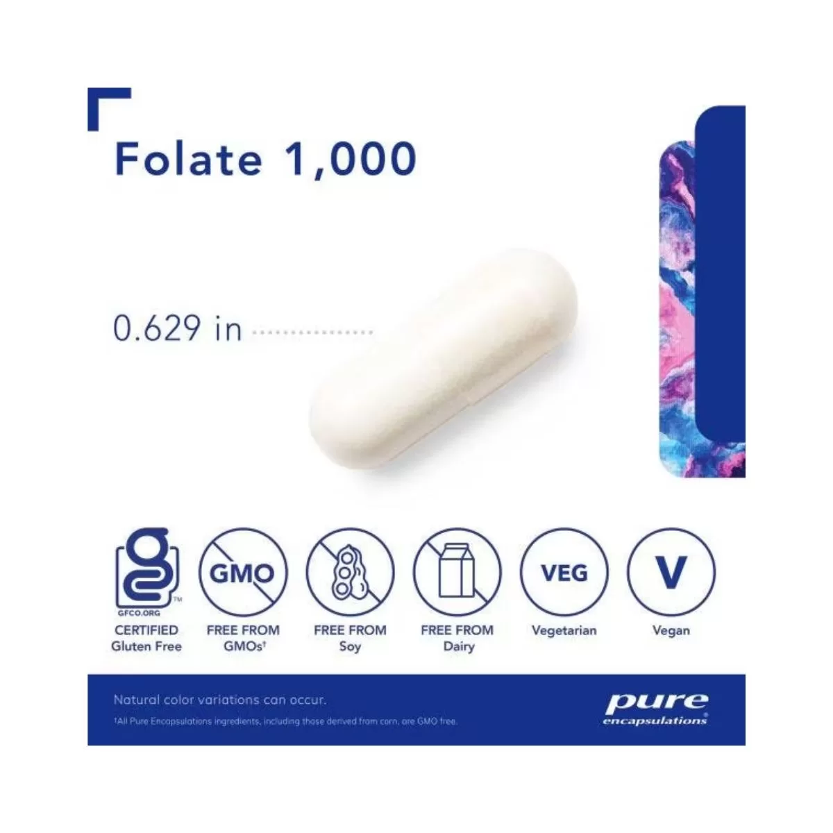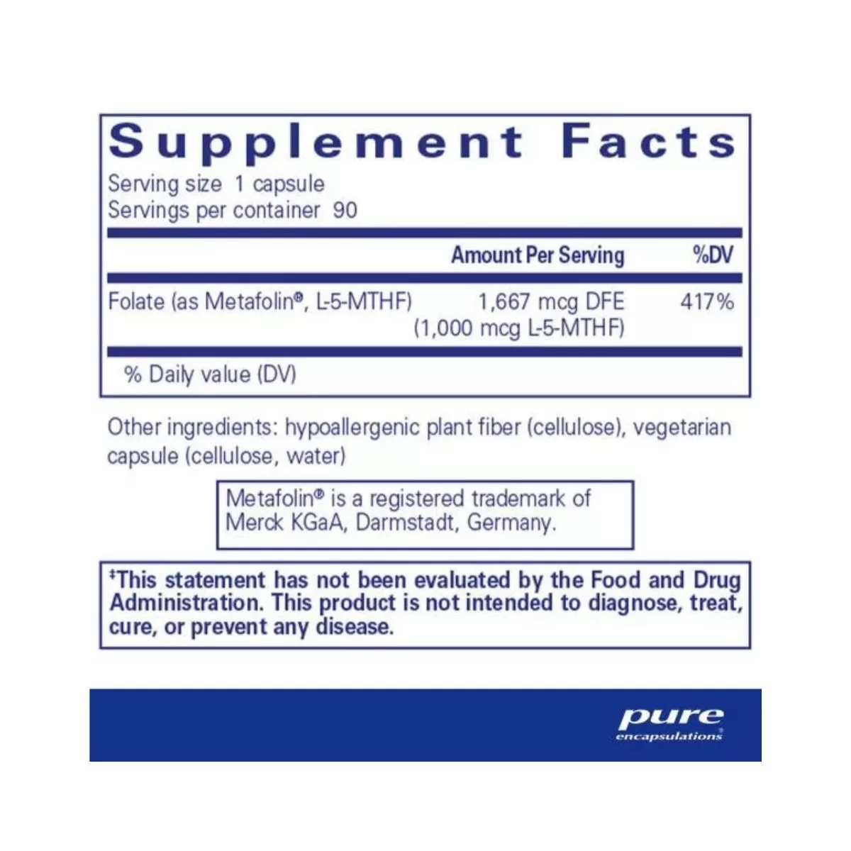 Each capsule of Pure Encapsulations Folate 1000 Metafolin contains 1000 mcg. of folate.